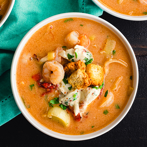 On commence en douceur avec notre Bisque de crevettes grises au Chèvre Frais Petit Billy. On vous l’accorde, ça ne sera probablement pas le plat préféré de vos enfants. Et bien dans ce cas c’est tant pis pour eux, cela vous donnera une excuse pour passer une soirée au calme.
