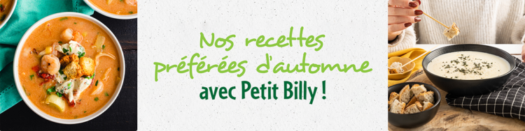 Êtes-vous prêts à découvrir le Top 3 de nos recettes préférées d’automne ? Spoiler alerte : elles sont toutes douces et forcément à base de notre cher et tendre Petit Billy. On sait que vous adorez la chaleur estivale, les cocktails et les cocotiers. Mais il faut passer à autre chose maintenant, et saluer la saison des feux de cheminée, des plaids et des films de Noël qui commencent doucement. Alors autant la passer avec des plats réconfortants, non ?