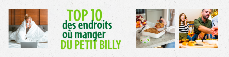 Devant une étoile filante : Quoi de plus incroyable que de faire le vœu de manger du Chèvre Frais Petit Billy, (parce que c’est forcément votre vœu devant une étoile filante) tout en mangeant du Chèvre Frais Petit Billy? On a cherché, on n’a pas trouvé.