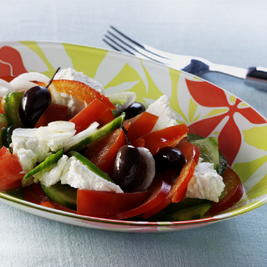 Coupez le concombre en dés, les tomates en quartiers ou en dés et les olives en morceaux puis réservez au frais.
