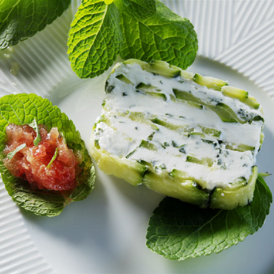 Déposez une couche de courgettes en les faisant se chevaucher légèrement puis recouvrez d’une couche de Petit Billy à la menthe. Renouvelez l’opération en terminant par une couche de courgettes.